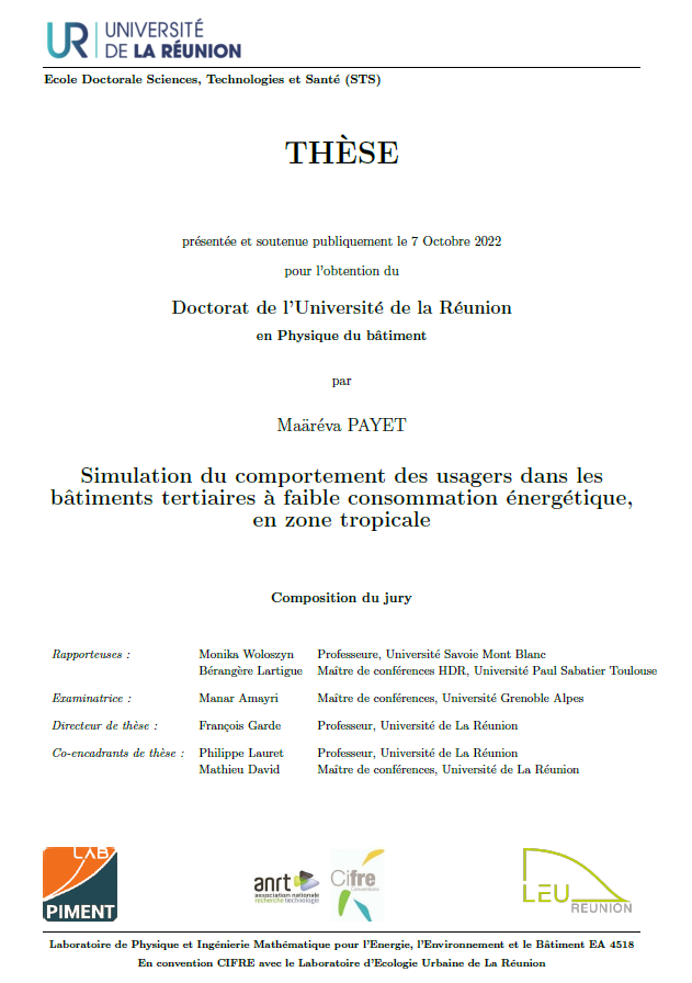 Simulation du comportement des usagers dans les bâtiments tertiaires à faible consommation énergétique, en zone tropicale